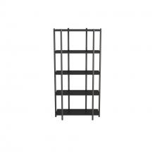The simplistic design and good hand of a leather steering wheel influenced the look of our modernist etagere. Six offset legs wrapped in topstitched graphite leather offer a textural counterpoint to a balanced quartet of ebony-finished oak shelves. Leather will vary.