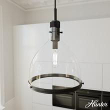 Hunter Van Nuys Matte Black with Clear Glass 1 Light Pendant Ceiling Light Fixture (48051)