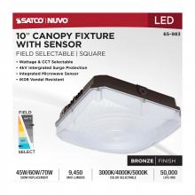 SATCO NUVO's 65-983 Field Selectable 10 inch square canopy fixture is an ideal choice for multiple applications. This fixture gives users the flexibility to choose from three wattage and three CCT options during installation. It also features an integr