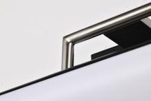 The design of the Solano 62-656 integrated LED small bathroom vanity light is sleek and minimalist, with a simple yet elegant shape. The stylish fixture is finished in black with brushed nickel accents that accentuate the clean lines and broad backplate. A