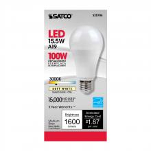 15.5 Watt; A19 LED; 3000K; Medium base; 220 deg. Beam Angle;120 Volt (S28786)
